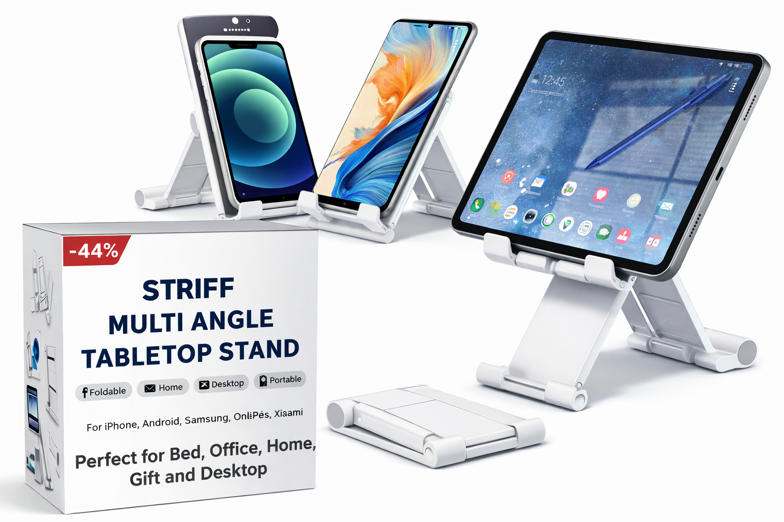 STRIFF Adjustable Tablet & Mobile Stand | Foldable, Portable | Compatible with iPhone, Samsung, OnePlus & More (White)